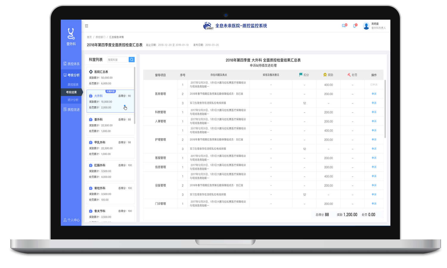 職能科室考核臨床科室,結(jié)果自動分發(fā)、匯總、上報、分析。